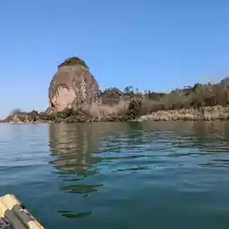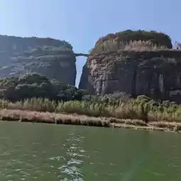 This is a beautiful, peaceful river in the Dragon and tiger mountain area. It's pure nature, surrounded by greenery, and small mountain peaks. It is accessable by a bamboo raft and there's even a possibility of a personal tour. On the river ladies in small boats sell zongzi (a Chinese sticky rice wrap), they are cheap and good. While going down the river the guide shows how and where people were buried a long time ago. It is a very silent and peaceful ride. While going down the river the guide also talks about the history of this place and ancient rituals. The bamboo rafts are pretty comfortable.