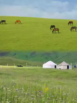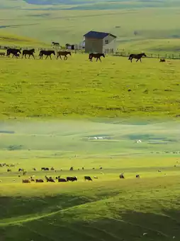 This is the grassland closest to the city, as if it is a piece of jade left by nature in the world. It is surrounded by mountains, lush grass, and herds of cattle and sheep. Any shot you take will create a beautiful picture.