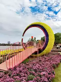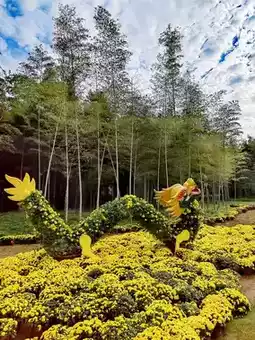 The first Chrysanthemum Art Festival in Yiwu Botanical Garden includes a sea of chrysanthemums, chrysanthemum-themed green sculptures, ball chrysanthemum corridors, precious chrysanthemum exhibitions, giant green sculptures, internet celebrity moon, internet celebrity hug bear, etc. The exhibits are rich in variety and exquisite in shape, attracting many tourists to check in.