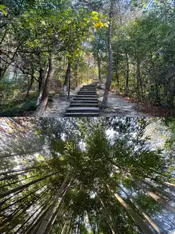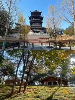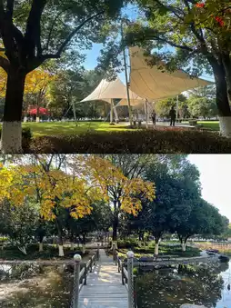 Enter the park from the north gate➡️Jiming Mountain Square➡️Qunying Lake➡️Mountain climbing plank road➡️Jiming Pavilion➡️Shiguang Log Cabin➡️Exit the park from the west gate