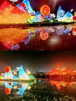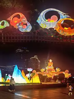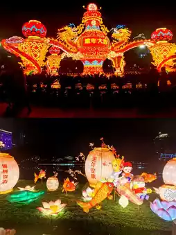 This Xiu Lake lantern show, respectively set up Xiu Lake Square brilliant lantern area and Xiu Lake Park lantern reflection Xiu Lake area. Two sub-areas have 17 groups of unique and lifelike lantern exhibitions. Such as the dragon blessing, auspicious dragon offering auspiciousness, dragon year good luck, dragon year health, dragon guide, flower dance fan shadow, spring is in the air, online silk road, etc. The lantern masters come from the 'Southern Lantern City' - Sichuan Zigong.