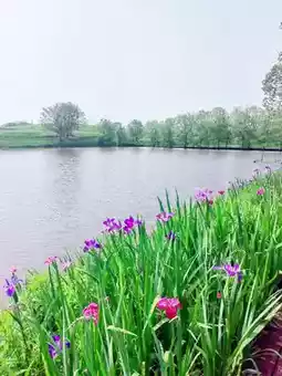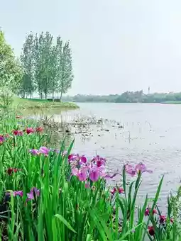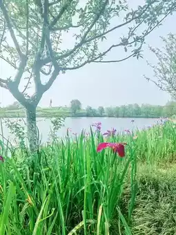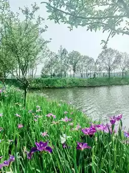 At the turn of spring and summer, the plants are joyous, and in the blink of an eye, it's the peak blooming season for irises. Along the ponds and paddy fields of Yiwu Botanical Garden, clusters of deep blue, light purple, and yellow irises quietly unfold. Each iris, light as a butterfly and elegant as an orchid, appears exceptionally dazzling against the backdrop of lakes and mountains.