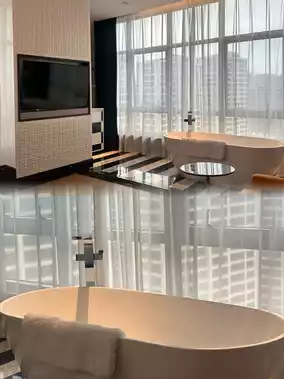 🛌 The Xiaodu smart control in the room brings a convenient living experience for modern people. With a gentle word, the lights in the room can be adjusted accordingly. The comfortable bed makes you feel like you're on a cloud as soon as you lie down; and the products in the bathtub are soft and comfortable, making you feel like you're bathing in the clouds after use.
