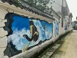 This village is a MUST SEE when you are in Yiwu. I was only in Xiaoliushi to see and try the glass brideg but then I was able to see those beautiful paintings on the houses. The village was formed or built as to make it as a tourist spot so they painted and colored their houses. Some of the paintings really look good. The people there are very hospitable. They are always smiling and they let you feel welcomed in their village. You can ho around and see the colored houses and also there are fun activities around. There's a place where you can rent a boat. There's a place where kids can play on the sand. There's a place where kids can just jump around a big rubber.
