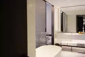The rooms are also incredibly spacious and clean, decorated in the modern minimalist style I love. The panoramic floor-to-ceiling windows offer amazing natural light. The bathroom is bright and thoughtfully partitioned, and there's even a capsule coffee machine—talk about attention to detail!