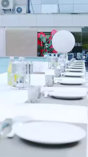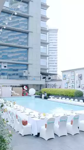 Outdoor Wedding Sanctuary: Against the infinite city backdrop, vows spoken here feel especially sacred. Whether for ceremony or banquet, stars and neon lights bear witness.