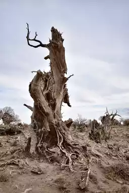 Six-thousand-year-old Populus euphratica intertwines the power of life, whether alive or dead