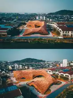 A newly established cultural and creative park in Yixing, which is not yet fully constructed, but inside it hides a building designed by the master architect Kengo Kuma!