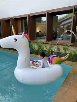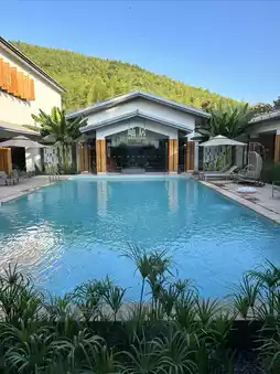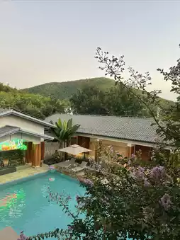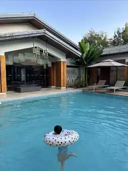 The guesthouse has its own mountain view swimming pool, the water quality is clean, and children can play in the water with peace of mind. There is no need to bring your own swimming ring, as they are provided! There are also little rabbits and squirrels🐿️ next to the restaurant, and children are very happy to feed the animals!