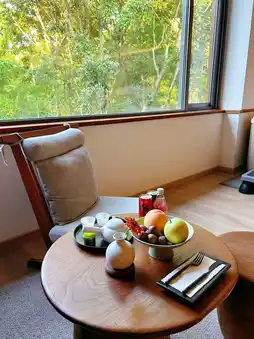 Seasonal fruits were provided upon check-in. Dinner was pre-ordered at the guesthouse, the ingredients were very fresh, the snow vegetable chicken was very delicious, and various stir-fries were also good. Breakfast was also quite rich, and the pork rib soup noodles were very suitable for children!