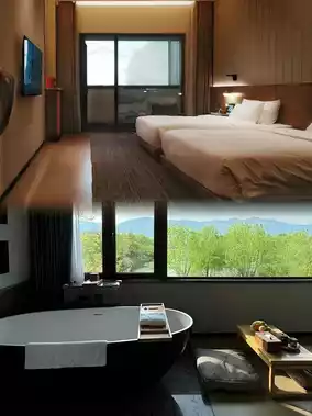 Each guest room here has its own unique view, and the layout and design of the room are ingenious. The room is equipped with a smart butler and comfortable bedding, Dyson hair dryers, Ferragamo/Hermes toiletries, etc., and customized tea 🍃, making you feel extremely intimate and comfortable. I particularly like the private hot spring suites here. You can enjoy the beautiful nature by taking a private bath in the huge courtyard 🌳; the loft parent-child room with a slide is also great, it is simply a paradise for children 🤩.