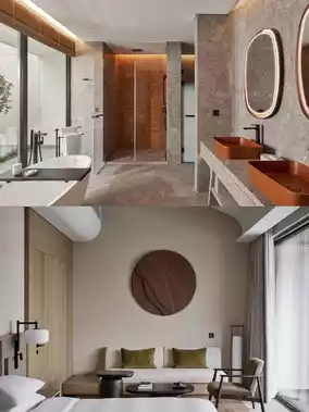 🏨The overall architecture of the hotel is inspired by traditional Jiangnan villages, using modern and simple techniques to show, perfectly combining traditional elements and modern aesthetics. The designer introduces mountains and rivers into the interior through architecture, creating a multi-sensory mountain living experience.🖼️🖼️🖼️