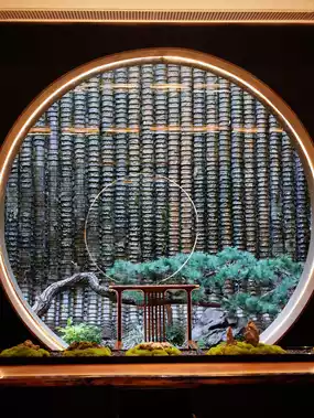 ○There is a classical Chinese corridor bridge at the entrance of the town, with a beautiful view of distant mountains and mist in the background. It is a perfect place to take photos.