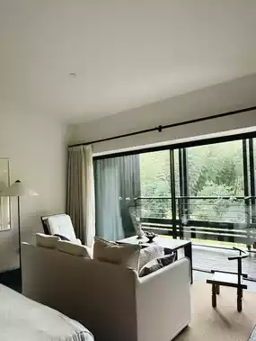 The lobby, where guests can wait, read, and relax, feels just like a home living room. The staff speak softly with warm smiles, while the crackling fireplace and faint woody fragrance in the air create a cozy atmosphere. Sipping light tea, I savored a rich, creamy cheesecake.
