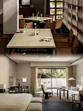 - Design Style: The overall design is a minimalist wabi-sabi style, with black and white as the main colors, blue bricks and white walls, interspersed with bamboo shadows 🎋. It retains the structure of the old tea factory, with weathered red brick walls paired with modern minimalist furniture, full of Japanese garden style 🪵✨.