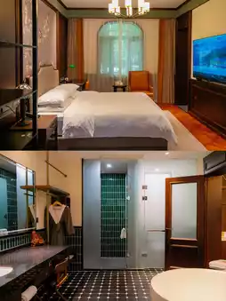 🏨 Hotel: Huajianling · Bishui Danxin, decorated in Republic of China style, nestled by the mountain and water. Open the window to mountain and lake views, located right at the entrance of Guifeng’s uphill trail. All hotel rooms have mountain views, with a bamboo forest behind, quiet and elegant.