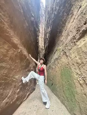 2️⃣Clear Water Canyon: The crystal-clear mountain stream contrasts beautifully with the red Danxia rocks, making for a super healing stroll.