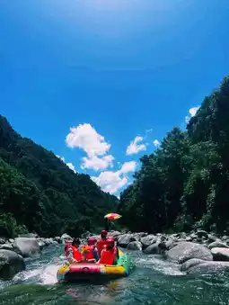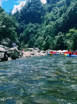 The whole rafting for one person is 9.8 kilometers, 2.5 hours in length, and the overall drop is as high as 298 meters; the parent-child section B double ticket/triple ticket is 4.5 kilometers and lasts about 1 hour