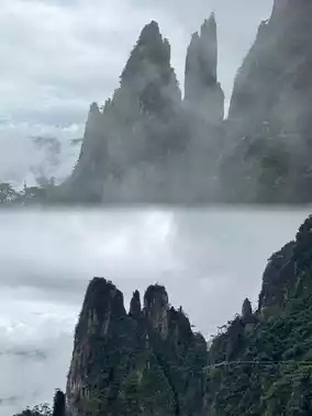 **Tiantai Mountain (Wuzhifeng Scenic Area):** Walk in the clouds! Trek the 1,900-meter-high cliffside plank path, where the Wuzhifeng peaks resemble giant hands reaching for the sky, and rolling clouds create a fairyland. Experience the suspended walkway, the Skyscraper Elevator, and the Golden Whip Pillar while enjoying a 360° panoramic view of the majestic peaks. **(A must-visit gem!)**