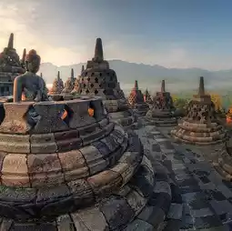 Borobudur Temple is located in Magelang, Central Java. Borobudur Temple is a Buddhist temple built in a hilly area.