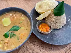 My wife tried the chicken laksa (IDR 80k) and it was unique! It was different from the ones we have back home in Singapore, kinda leaning more towards a Mee Soto and Laksa hybrid. The noodles were like the instant noodles kind, and the soup base was full-bodied, somewhat leaning towards a curry texture.
