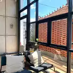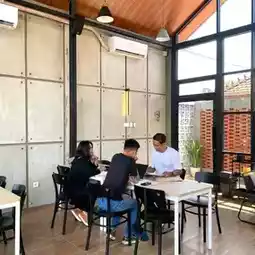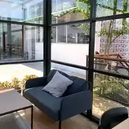 Although it's a bit tucked away from the main road, you'll find it quite easily because its facade is truly eye-catching with decorative red brick walls towering high. Once you go up, there are 2 options of areas you can choose according to your needs. First, there's the indoor AC area with several proper seating options for studying and sofas for relaxing (it's really cool and comfortable in this room).