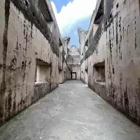 After passing through the tunnel, you can see a beautiful castle made only of stone. Though it has been damaged over time, it still tries to preserve its original form, as if eagerly waiting for visitors.