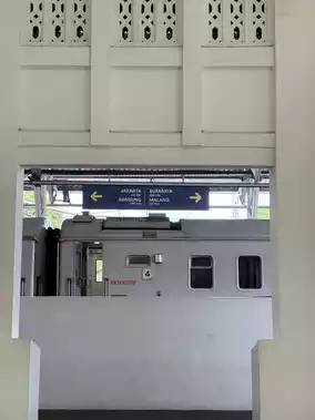 Yogyakarta Tugu Train Station is a historic railway hub, with its white colonial-style building becoming an important landmark in the city of Yogyakarta. The overall design combines Dutch colonial architectural styles, featuring an elegant exterior and spacious interior filled with a strong historical atmosphere.