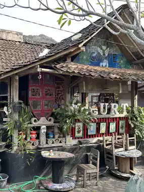 Water Castle Cafe, a stylish and delicious spot, is a 10-minute walk from Tamansari