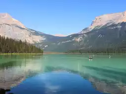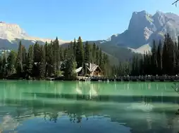 Emerald Lake is a glacial lake located in Yoho National Park in British Columbia, Canada. Known for its stunning, vibrant turquoise waters, the lake is surrounded by the towering peaks of the President Range in the Canadian Rockies. The lake's distinctive color comes from "rock flour," or fine glacial silt, suspended in the water. The water is fed by glaciers and is most colorful during the summer months when glacial melt increases. The hues of the lake change with the light, offering a different view throughout the day.
