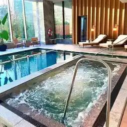 In addition to the pool and jacuzzi, there is also a sauna, and it felt great to be able to take a break on the curtained pool bed after playing for a while 🌿