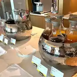 While the lounge is quite spacious, it's shaped like a long rectangle, and food and drink are presented in only one area at the very back. 👀