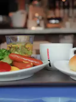 Breakfast is served buffet style at the restaurant on the second floor.