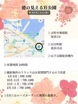 Introducing a spot where you can take cute photos for free and see the best views📣 Conveniently located just a 1-minute walk from the station🚉 Even though we went on a sunny Sunday afternoon, there weren't that many people there, so we were able to take our time taking photos✌️ There's also a nice coffee shop inside, and Chinatown is within walking distance👟✨ I'm a Yokohama resident, so I'll tell you all about a quick weekend getaway! This is a recommended photogenic spot in Yokohama 📷💐