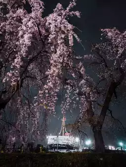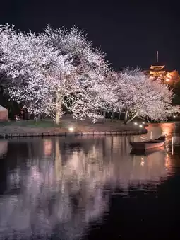 The cherry blossoms are lit up in the spring!