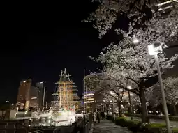 During cherry blossom season, you can enjoy the cherry blossoms at night while feeling the sea breeze,