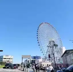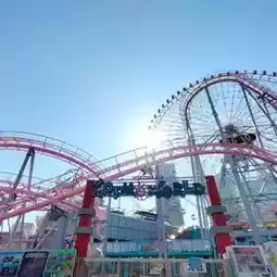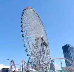 The big Ferris wheel and the red lanes of the roller coaster look beautiful against the blue sky✨