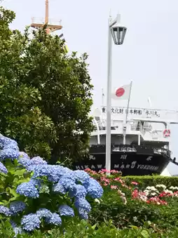 What a surprise! The early hydrangeas were blooming, and I was able to see the Hikawa Maru in all different expressions 🛳️