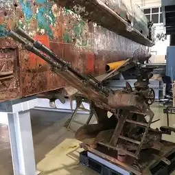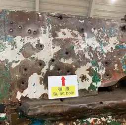🌸This engineering vessel, which can accommodate small boats, is nearly 30 meters long, larger than I expected. The double doors at the stern are impressive. There are machine guns, bazookas, and automatic rifles, suggesting a fierce battle. There are also numerous bullet holes.