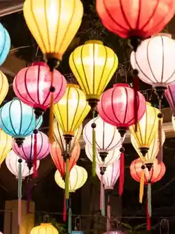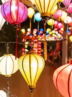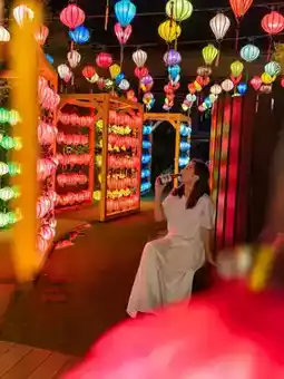 The colorful lanterns, inspired by the night markets in Vietnam, brighten up the night sky and are very beautiful!