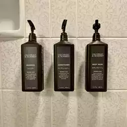 The bathroom is spacious and has a bathtub. Refillable shampoo, treatment, and body soap are provided. The restroom has a washlet.