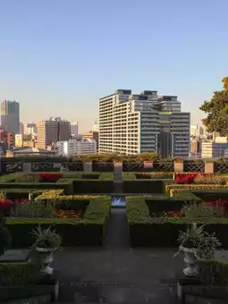 The garden is called the Yamate Italian Garden, and is a beautiful garden with a symmetrical geometric pattern.