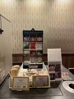 Free drinks include coffee, tea, cafe latte, and cappuccino...!! !