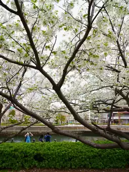 This road was originally a railway track, now converted into a pedestrian walkway lined with cherry trees, which are in full bloom in spring.