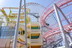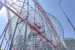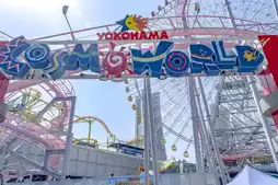 Under the spring sunshine, I walked to the Ferris wheel area of Yokohama Cosmo World. The last time I came here, it was after sunset when the illuminations were on, so it was much brighter and had a much cleaner atmosphere. There were a lot of people there enjoying themselves.