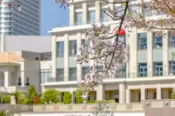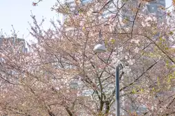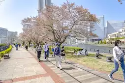 This is the view from a stroll along Bashamichi in Yokohama Minato Mirai. The cherry blossom petals had all fallen, but there were still quite a few flowers left, and together with the surrounding scenery, it created a very beautiful atmosphere. It's no wonder so many people stroll along Bashamichi.