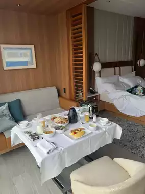 For breakfast, I ordered room service. I chose the American breakfast and enjoyed it in my room, gazing at the harbor view.