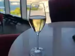 He guided me to a window seat with a view of the Yokohama ocean and the landmark tower. Since the weather was clear, a blue view spread out before my eyes. I felt good, so I ordered an additional glass of champagne.