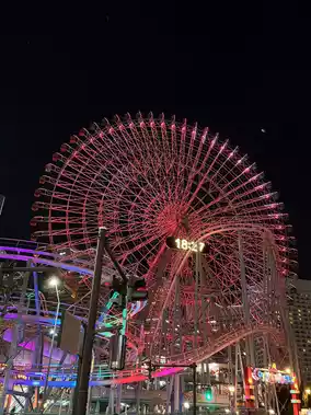 You must visit Cosmo World in Yokohama, where the Ferris wheel is visible in a large way!