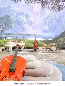 the stringed instruments placed on the hug chairs and the land set on the stage play automatically! Pay attention not only to the sound but also to the vibration and movementš